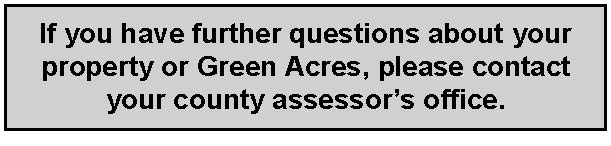 Green Acres applications are made to the county assessor. Proper documentation to verify agricultural production must be submitted with the application.